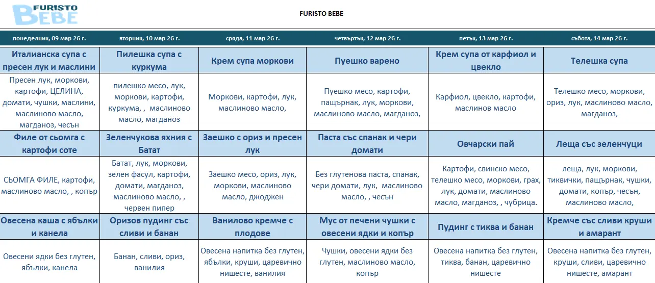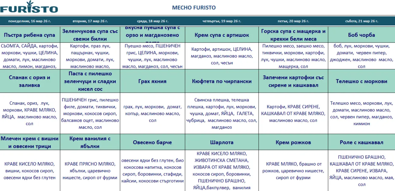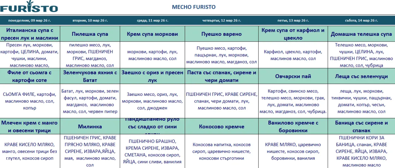 Furisto Bebe - Нашето месно меню