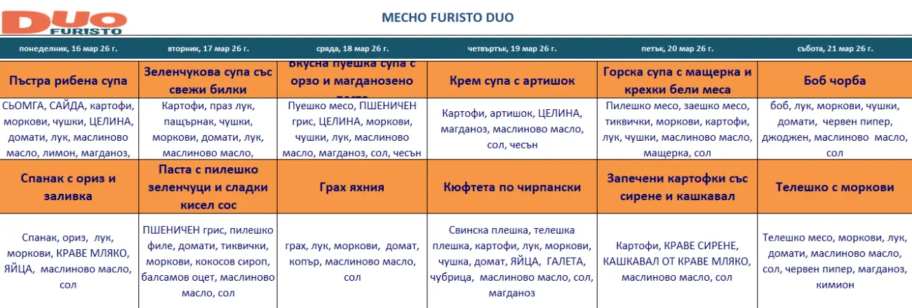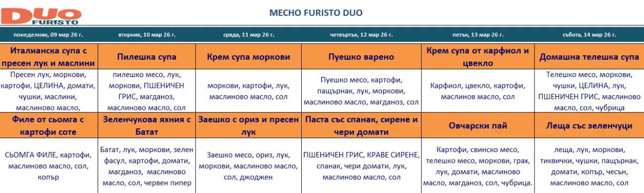 Furisto DUO - Нашето двукомпонентно месно меню