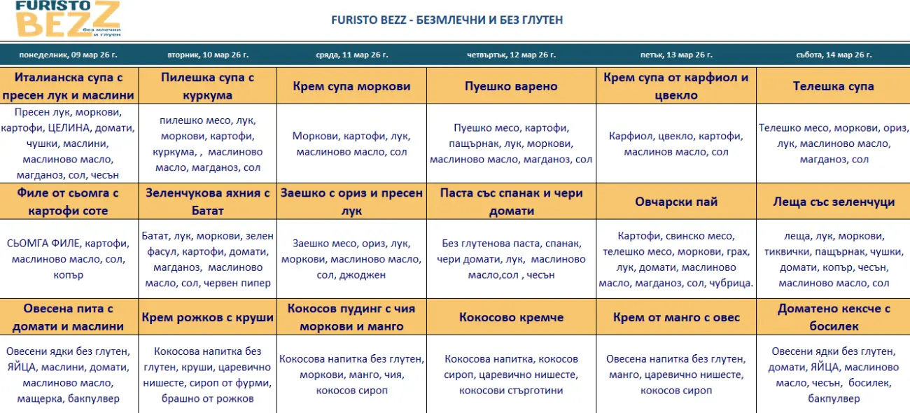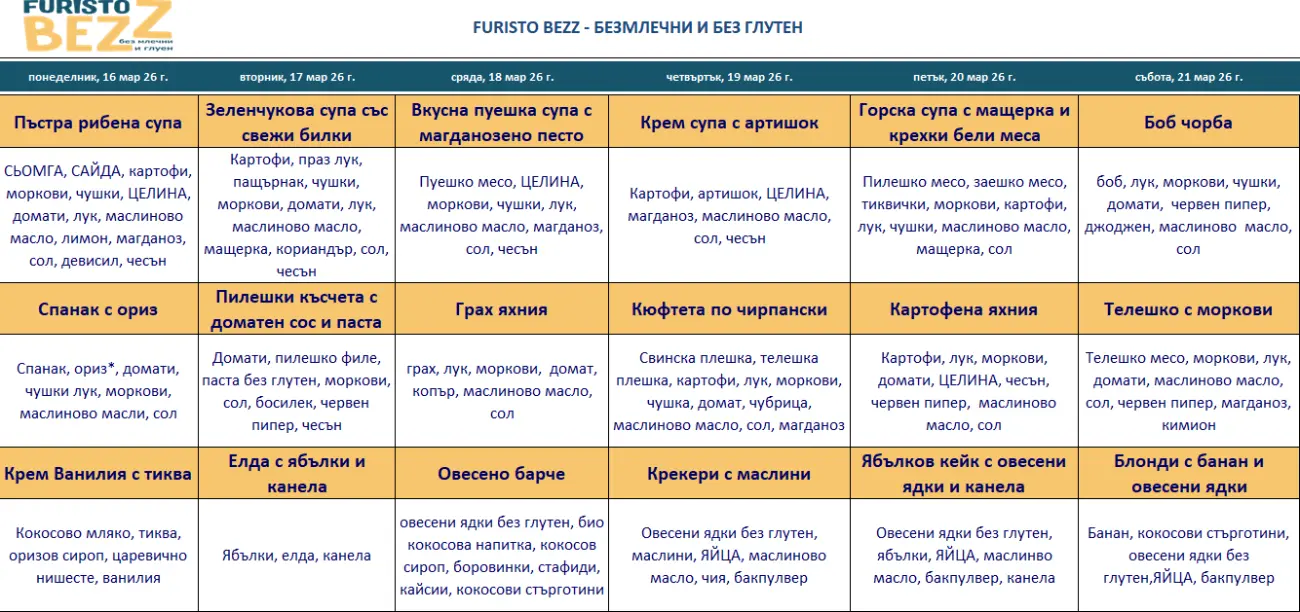 *БЕЗ МЛЕЧНИ И ГЛУТЕН СЪДЪРЖАЩИ ПРОДУКТИ